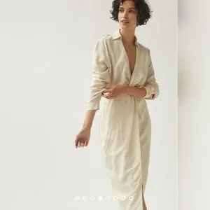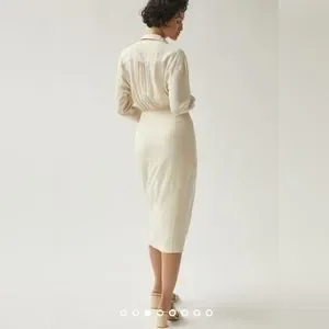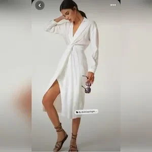 Anthropologie V-Neck Knot Front Midi Dress, in white, size 6, modern and elegant, used in extraordinary condition.