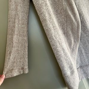 EUC, oatmeal color open front cardigan with ribbed sleeves and neckline/hem. Light weight and comfy! Measures approx. 31” from shoulder to bottom.