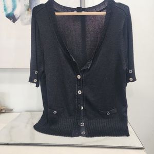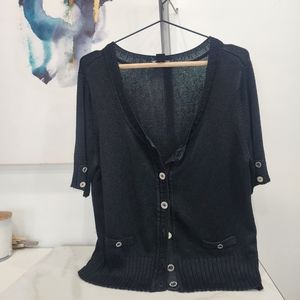 [ WHITE HOUSE BLACK MARKET] womens size XL, 1/2 sleeve black cardigan w/ silver