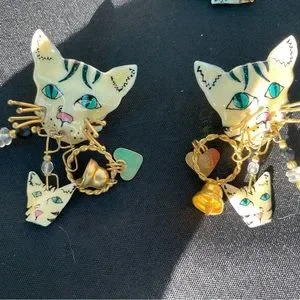 Vintage lunch at the ritz cat face pierced earrings , signed and very rare.
