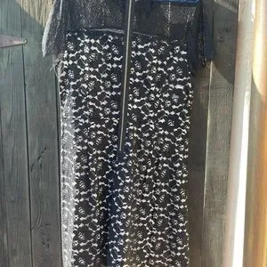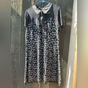 Worn one time! Very cute babydoll dress with lace. Gold zipper down the back, with cream underneath.