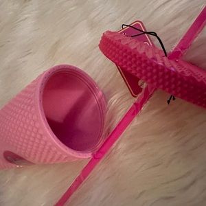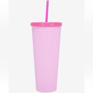 Featuring a pink pyramid allover design and the iconic "B" logo in the center. Comes with a contrast hot pink screw-on lid and reusable straw.