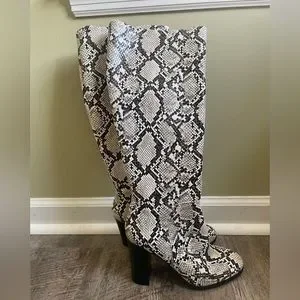 Kenneth Cole Snake Boots Animal Print To The Knee White
