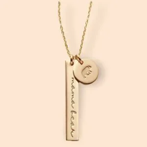 Mama Bear Dainty Two Charm Stamped Gold Charm Necklace NWT