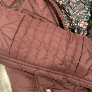 Beautiful maroon jacket, no hood. All zippers and snaps are in perfect condition! Tapering in waist and beautiful patterned interior.