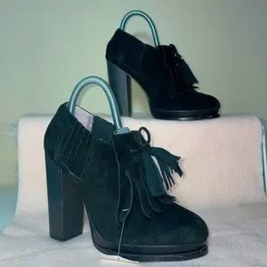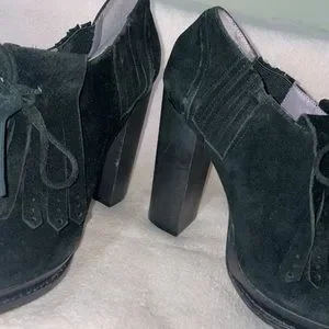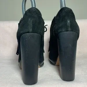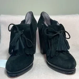 Charles David Black Suede Tassel Fringe Block Heel Pumps.