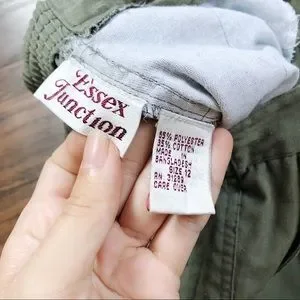 *SOLD* Fabulous vintage high waisted shorts by Essex Junction. Classic pleated front style in olive green twill - perfect Laura Dern in Jurassic Park vibes. Waist 27–30“, rise 13“, inseam 7“. Vintage size 12, fits modern 28-29 waist, excellent vintage condition.