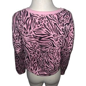Divided H&M sweater light pink with black zebra and leopard print used good condition. With elastic band to adjust as a cropped sweater. Size Medium