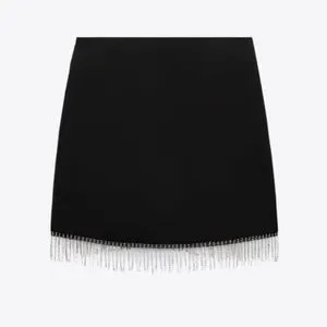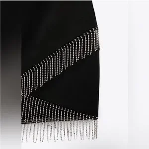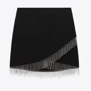 NWT Zara black mini skirt with silver rhinestone fringe detail