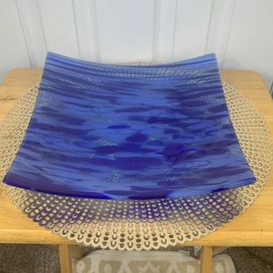 Colbalt blue with light blue Art glass plate, platter, tray. 12x12. In excellent condition.