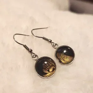 NEW Handmade Black and Gold Acrylic Swirl Drop Earrings