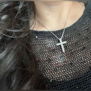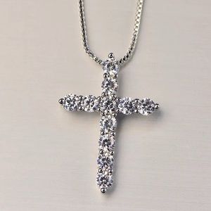 New Simulated Diamonds Sterling Silver 18” Classic Cross Pendant Necklace