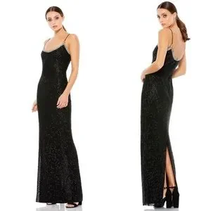 NWT Mac Duggal 93551 Beaded Spaghetti Strap Column Embellished Gown