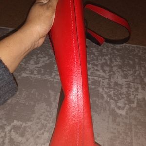 BEAUTIFUL LIMITED EDITION Coach x Keith Harding Tote in EXCELLENT condition. Sold out online! Collectors item! Only worn twice. Leather exterior with clean suede like interior. Color: Electric Red and Black!**There is a small scratch on the front of bag seen on the last photo! HARDLY noticeable.** Coach hang tag is not present nor is original dust bag but bag will arrive to you completely protected!