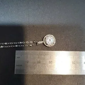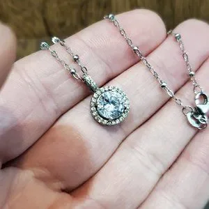 18 Inch 925 Sterling Silver Rustic Halo Gemstone CZ Pendant Necklace