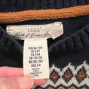 This was one of my favorite sweaters that my son wore. Lots of wear left! Perfect for the classic Christmas sweater look! Size 2/4 Y.