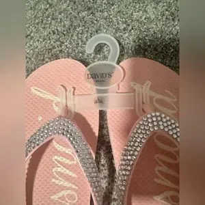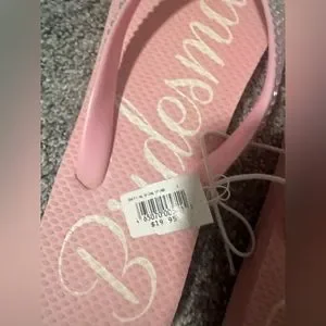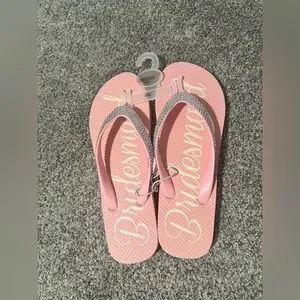 New with tags David’s Bridal Bridesmaid pink rhinestone flip flops. Size L (9-10).