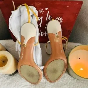 casual shoes, beige color with crossed strap, small heel in size #8