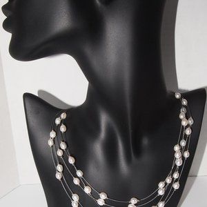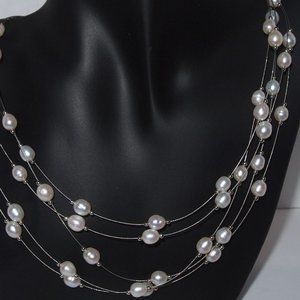Genuine Fresh-Water Pearls 5 Strands on 16 Inch Silver Necklace.