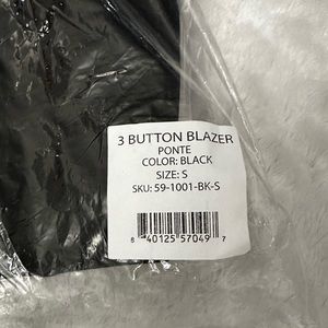 NWT- SUZIE KONDI 3 Button Black Ponte Blazer