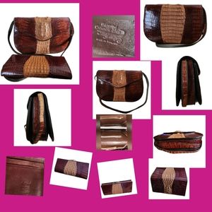 VINTAGE GENUINE CROCODILE LEATHER CROSSBODY BAG & MATCHING WALLET SET NWOT