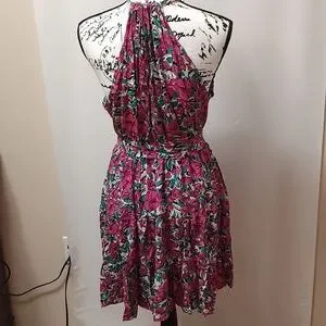 Ditsy Floral Halter Ruffles Above Knee Dress