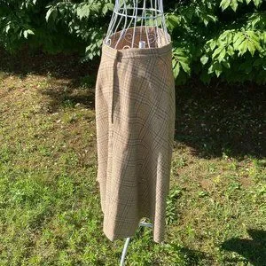 True vintage academic 50s 60s hand tailored one of a kind Pendleton wool circle skirt. Gorgeous tartan in rare color way of beige, brown and powder blue. Metal zipper and button closure. Would best fit a S- M, but please see the measurements to ensure a perfect fit. Here to help if you have any questions.