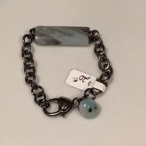 Handmade by Shelly, one of a kind fashion jewelry. Brand new. Bracelet is 6.5” in size. Gunmetal finish on chain and closure. Beautiful calcite stone centerpiece with calcite beaded charm.
