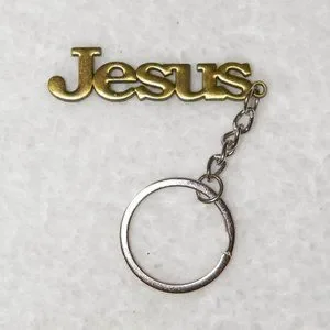 JESUS Bible & Cross Keychain Brushed Gold Metal