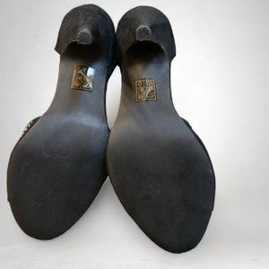 Call It Spring Rhinestone Crystal Black Faux Suede Ankle Strap Stiletto Heels in size 8.5 are a glamorous choice, offering both style and comfort. With a dazzling rhinestone sparkle finish and elegant faux suede material, these heels elevate any outfit. In very good condition, they combine fashion-forward design with a secure ankle strap for a confident stride. New Years party, special occasion or a night out on the town these will add the sparkle to your outfit. Smoke free, pet friendly home. Always open to fair offers. Bundle items and save with combined shipping rates.