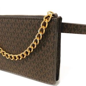 Michael Kors Brown Logo Belt Waist Bag With Gold Chain NWT