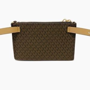 Michael Kors Brown Logo Monogram Pull Belt Waist Bag With Gold Chain NWT