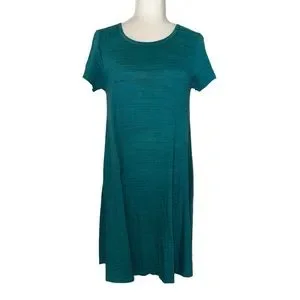 LuLaRoe Heather Green Single Pocket Short Sleeve Carly Swing Dress Size XXS