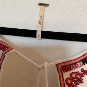 Free People Dress Cream Dress with beautiful rusts & brown embroidery SMALL
