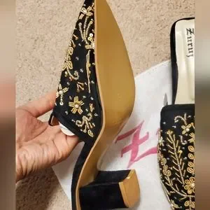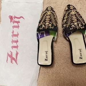 Beautiful dabka and Kora work on velvet Pakistani heeled shoes. size on the back says 9 but it is more equivalent to US 7. Brand new