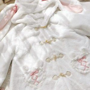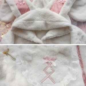 Embrace your inner bunny with our Bunny Ears Hooded Plush Coat. You'll be cozy and stylish in this playful, lolita-style short coat."