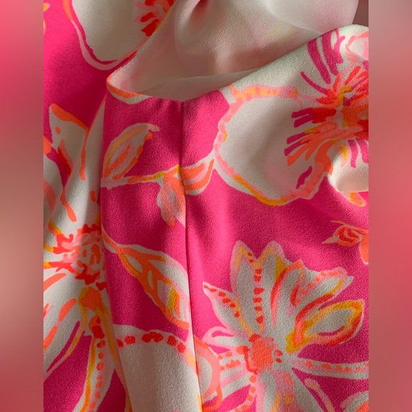 Gently worn very briefly 1x, gorgeous print and easy to wear halter dress. Lilly Pulitzer Ally Halter Swing Dress size Small, print is Prosecco Punk Bleachy Blooms. Upon inspecting before listing, I noticed the dress has a small pull in fabric on the back. Pictures included to show this detail.