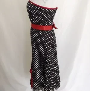 BCX Strapless Black White & Red Polka Dot Dress