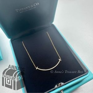 Tiffany & Co. 18K Yellow Gold SMALL T Smile Pendant w/Diamonds 16.5" Necklace