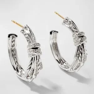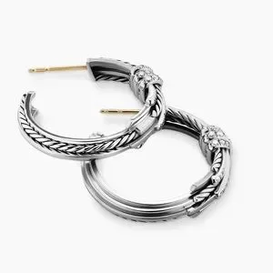 David Yurman Angelika Sterling Silver Hoop Earrings with Pavé