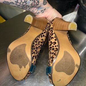 Naughty monkey leopard print, high heeled, open toe women’s size 6 printer on pony hair.