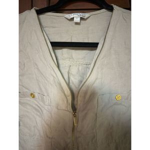 Ellen Tracy Linen Shirt - Size XL - Tan Colors - 3/4 Length Sleeves. 100% linen