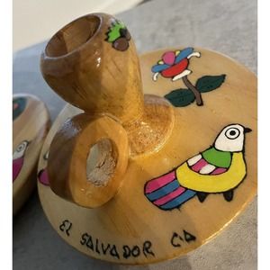2 - Small Colorful Wooden Candle Stick Holders Made In EL Salvador