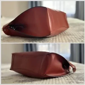 There is a slight mark at the bottom (see pic) and the hardware on the closure has some signs of wear. Interior is pristine. The overall condition is excellent: no other visible damage or defects. It will come with a generic dust bag.