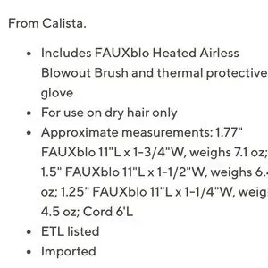Take time to treat yourself (and your hair) with the Calista FAUXblo Heated Airless Blowout Brush. Select your favorite gorgeous ombre gemstone color -- Emerald, Ruby, or Sapphire -- and get that salon-worthy blowout without the hassle of going to the salon. New in box. Only taken out for listing.
