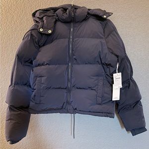 NWT Good American Puffer Jacket Navy Blue Size XS