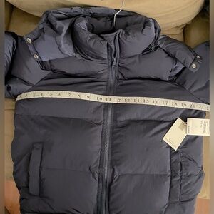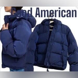 NWT Good American Puffer Jacket Navy Blue Size XS With Removable Hood