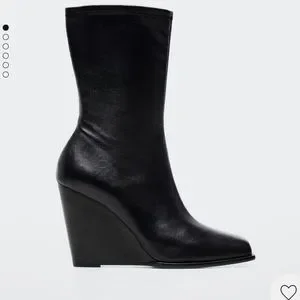 $200 black leather wedge boots. Current season and sold out. Size 39 fits 8.5 and 9