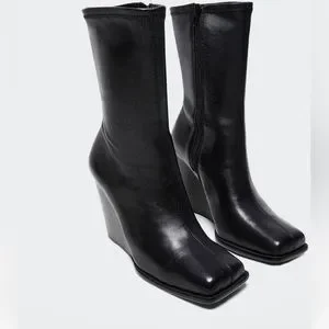 MANGO New…Black Leather wedge boots 39 fits 8.5-9 never worn