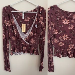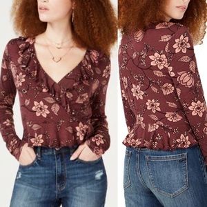 NEW American Rag Juniors Floral-Print Ruffled Wine